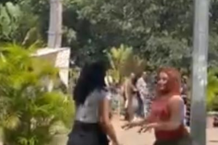No vídeo, é possível ver as jovens se empurrando, trocando tapas e partindo para os socos. Em determinado momento, elas chegam a rolar no chão, puxando o cabelo uma da outra. Enquanto isso, colegas observam ou tentam intervir. “Os seguranças estão chegando. Separa as duas”, grita um dos presentes.