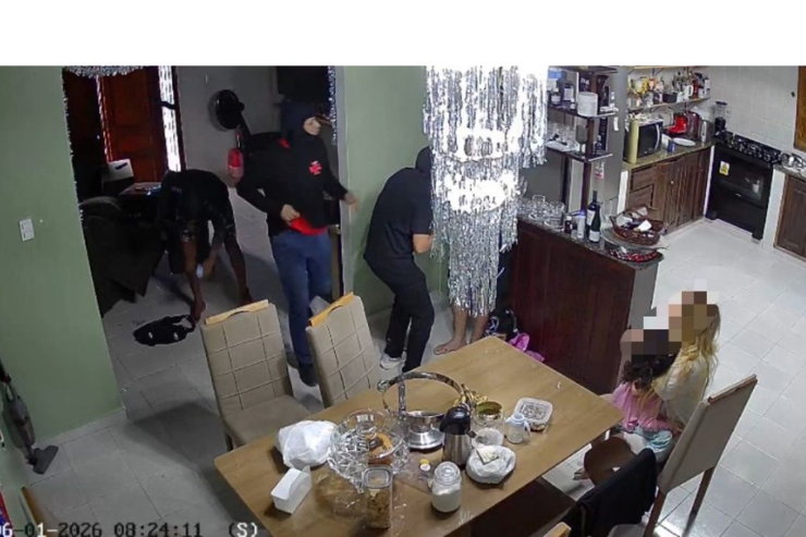 Durante a ação criminosa, os indivíduos, em posse de uma arma de fogo e de uma faca, agrediram e ameaçaram os moradores da residência.